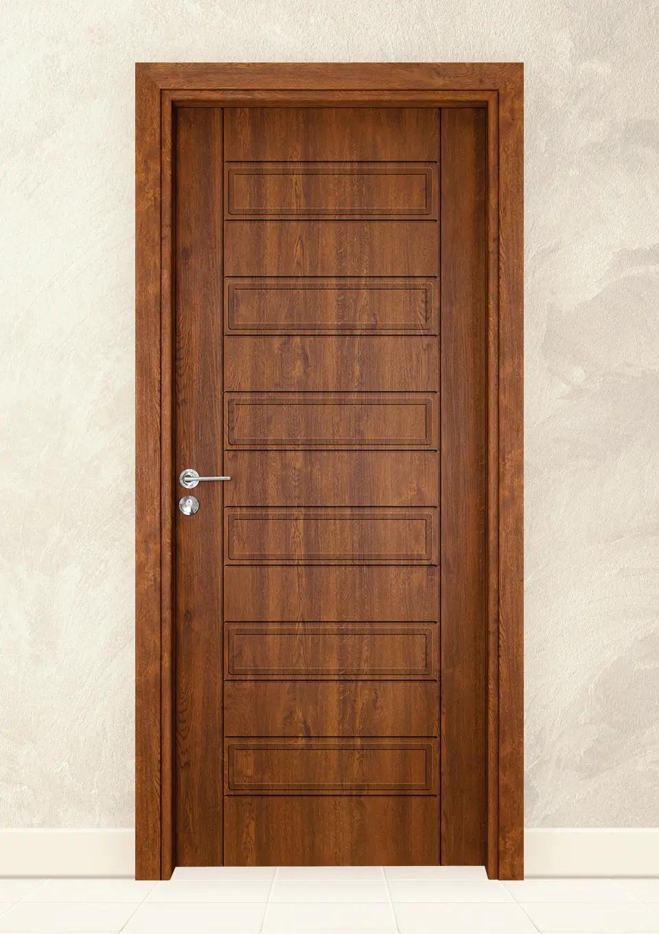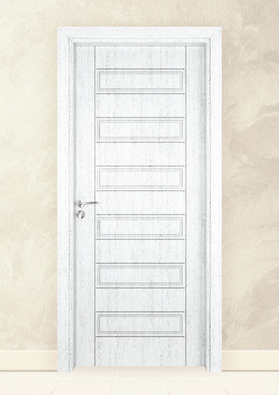 Модерна интериорна врата с покритие от 3D полипропиленов ламинат и здрава конструкция от HDF плоскости. Подходяща за дома или офиса.